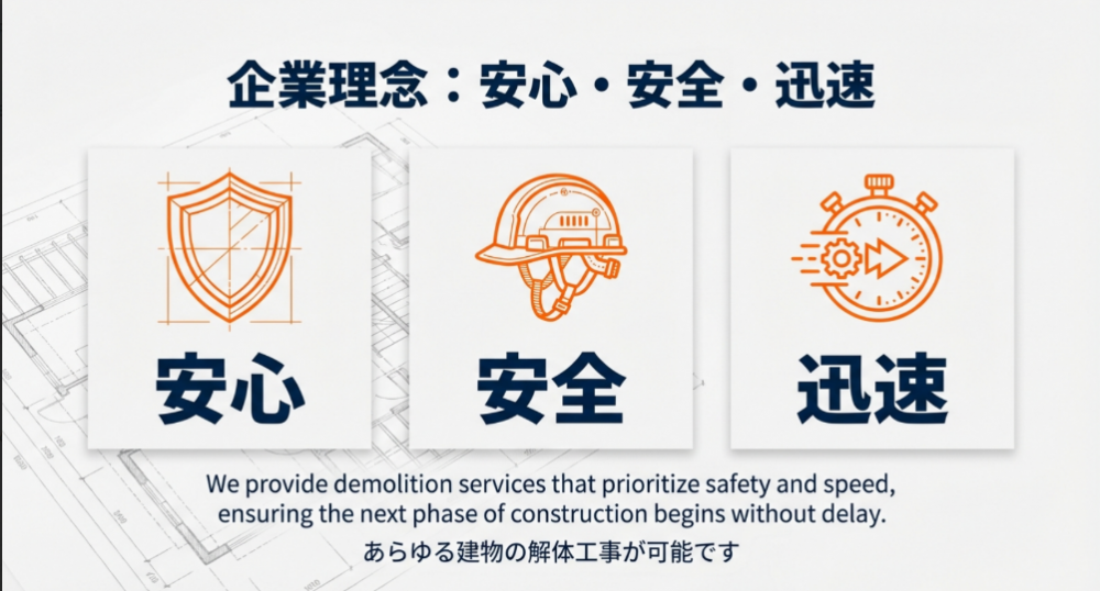 1. 私たちが大切にする企業理念:「安心・安全・迅速」