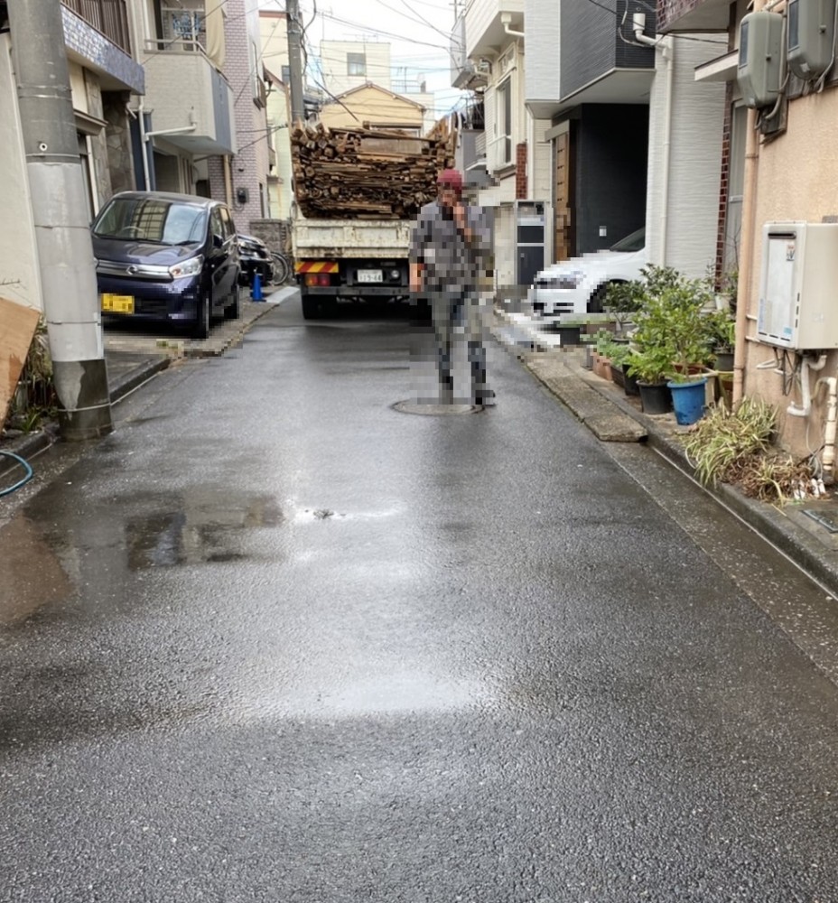 道幅が狭いですが、ダンプが比較的近くまで侵入ができましたので、